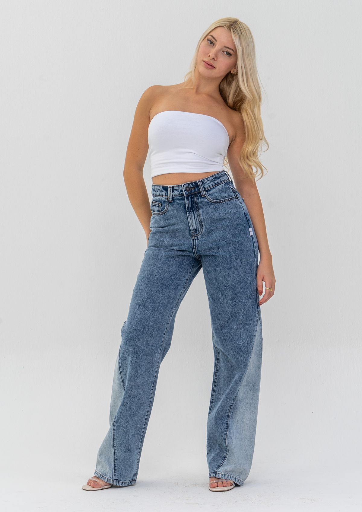 Contrast Colour Wide Leg Jeans